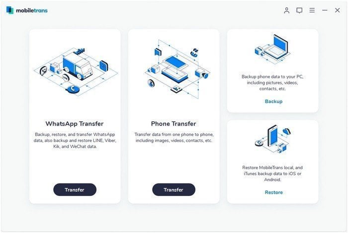 Schritt 1. Installieren Sie MobileTrans auf Ihrem Computer und wählen Sie WhatsApp Transfer.