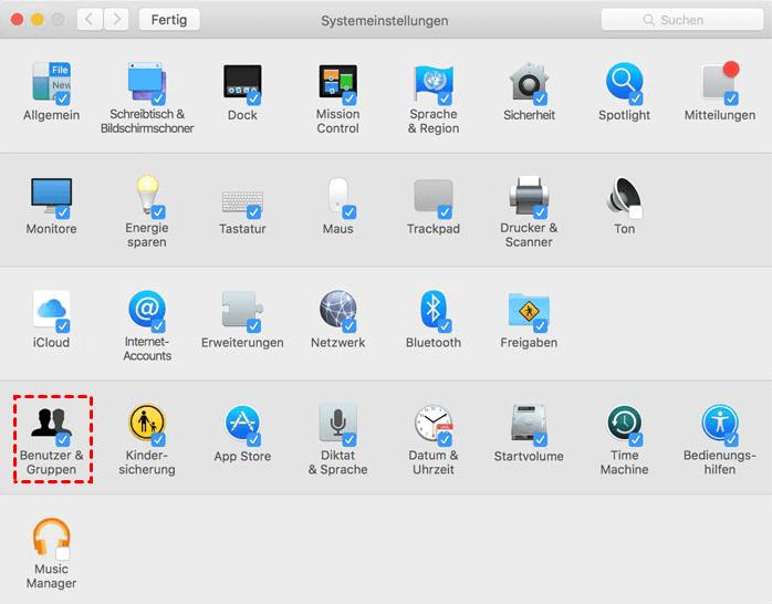 Melden Sie sich als Administrator an > Gehen Sie zu Systemeinstellungen > Wählen Sie Benutzer & Gruppen > Geben Sie Ihr Administratorkennwort ein. Wählen Sie das Konto aus, das Sie zum primären Konto machen möchten, und klicken Sie auf Zum primären Konto machen.