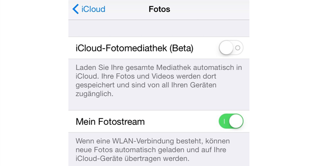 Stellen Sie sicher, dass „Mein Fotostream“ aktiviert ist. Dann lädt Ihr iPhone neue Fotos hoch und sendet sie automatisch an alle Ihre iCloud-Geräte, wenn eine WLAN-Verbindung besteht.