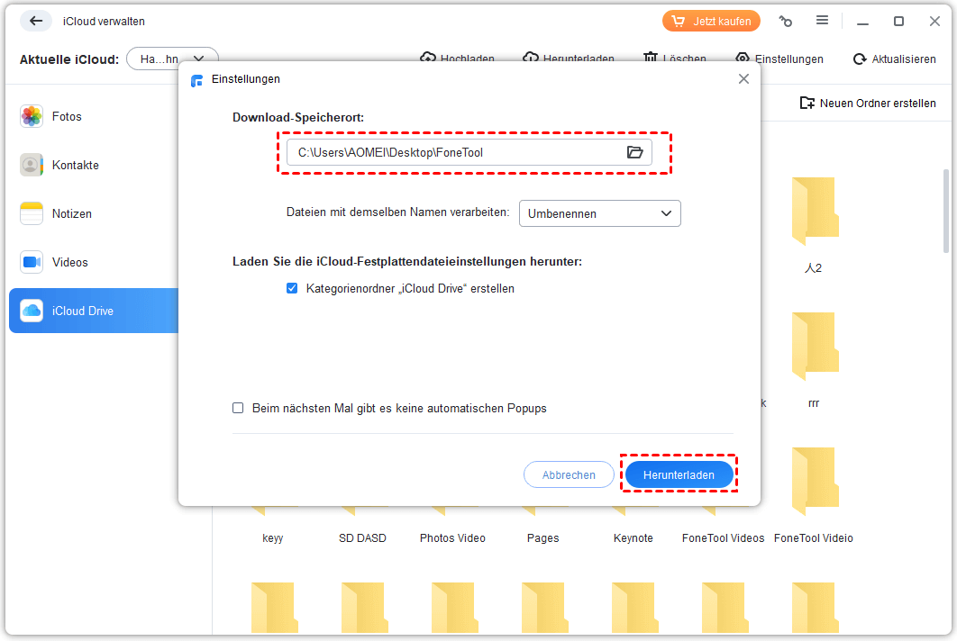 Mit FoneTool auf iCloud Drive-Dateien auf dem PC zugreifen