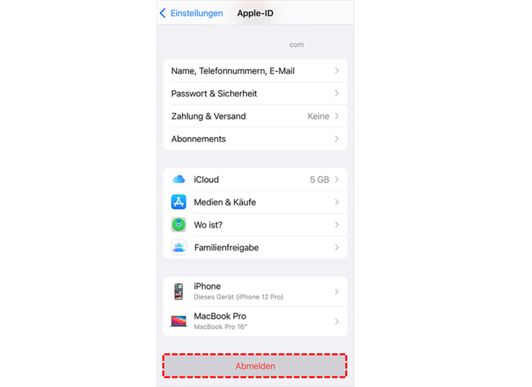 Weg 2. Abmeldung und Anmeldung bei Apple ID