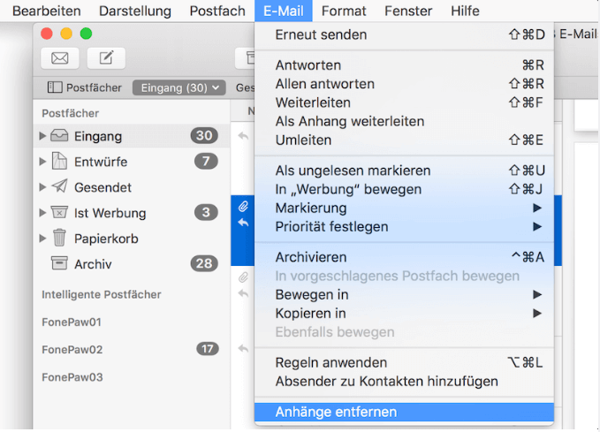 Schritt 3: Wiederholen Sie diesen Vorgang für jede E-Mail, deren Anhänge Sie löschen möchten.