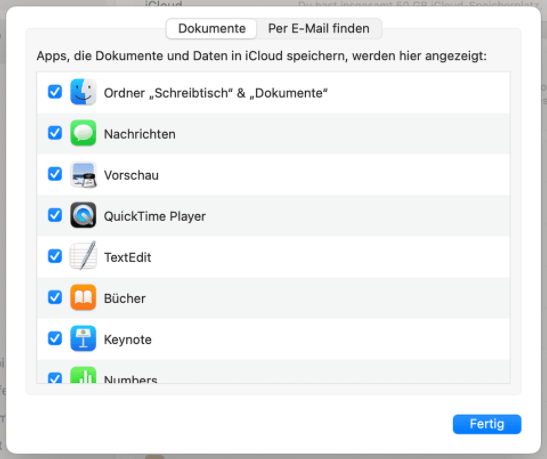 - Alle Dateien und Ordner auf dem Schreibtisch des Macs werden in iCloud Drive gesichert