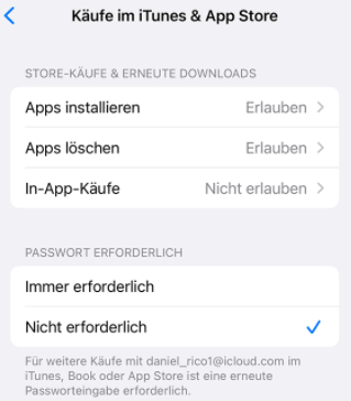 - Wählen Sie als Nächstes „Käufe im iTunes & App Store“ aus.