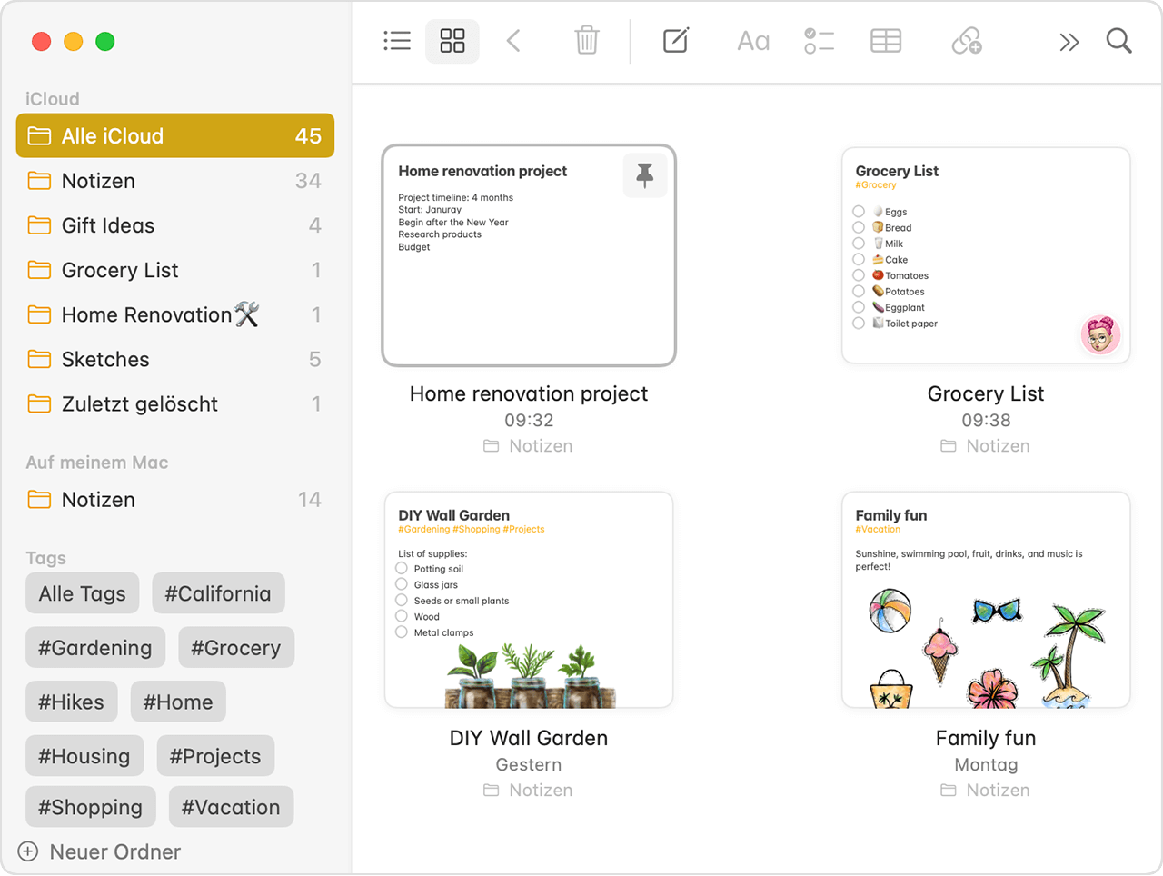 Es ist auch möglich, auf dem Mac Apple Notizen zu iCloud hochzuladen.