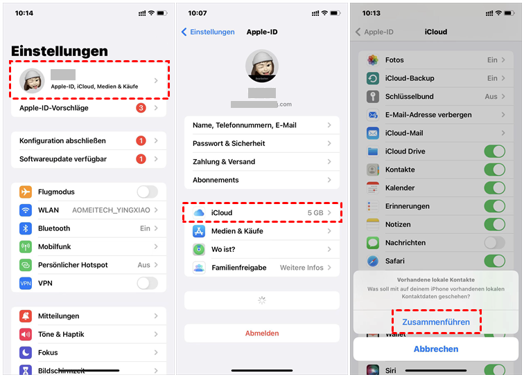 Weg 1. Notizen von iCloud aufs iPhone über Einstellungen verschieben