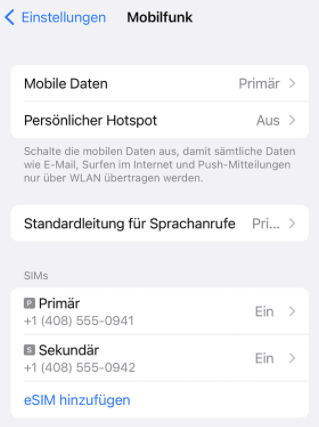 Sie wissen es vielleicht nicht, aber seit dem iPhone X hat Apple einen physischen SIM-Kartenanschluss sowie zwei interne eSIM-Karten (Embedded-SIM) integriert. Dank eSIM können Sie einen Mobilfunktarif Ihres Mobilfunkanbieters ohne physische SIM-Karte aktivieren.