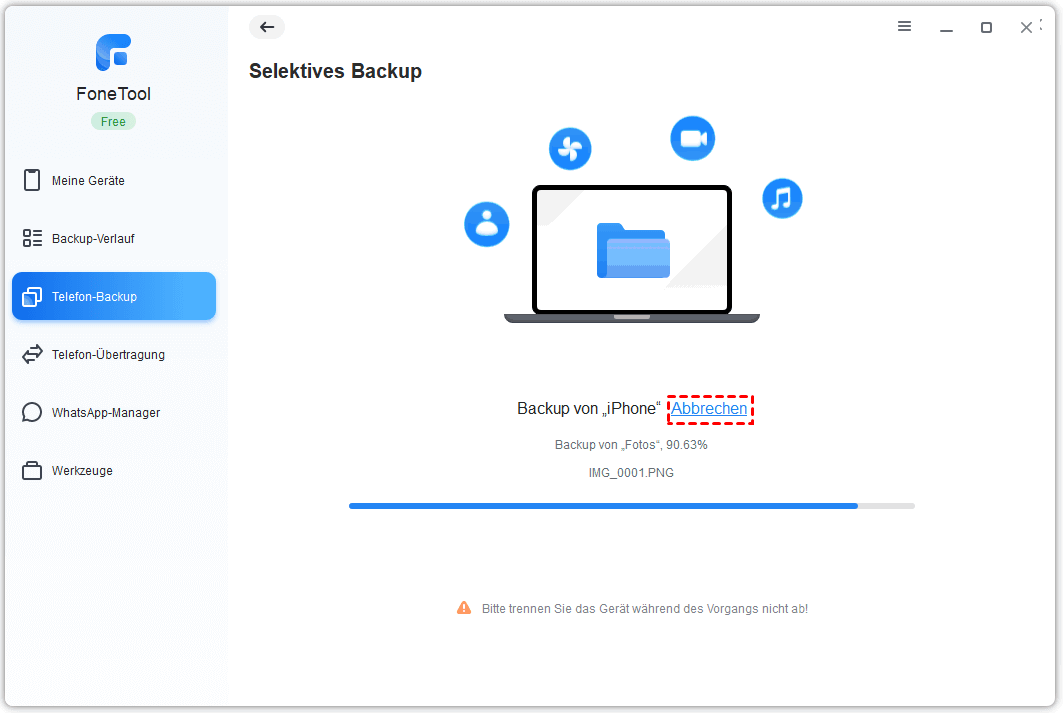 Sie können eine Sicherung abbrechen, indem Sie auf die Schaltfläche „Abbrechen“ klicken, während eine Sicherung ausgeführt wird.