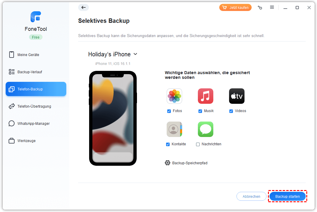 Schritt 6. Klicken Sie auf die Schaltfläche „Backup starten“, um Ihr Gerät zu sichern.
