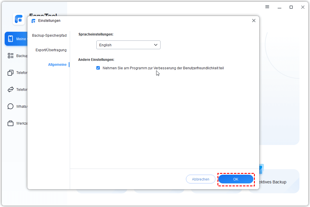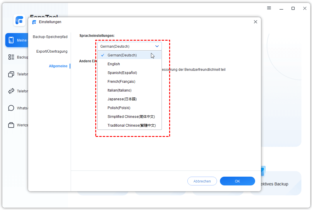Wie ändere ich die Sprache in FoneTool?
