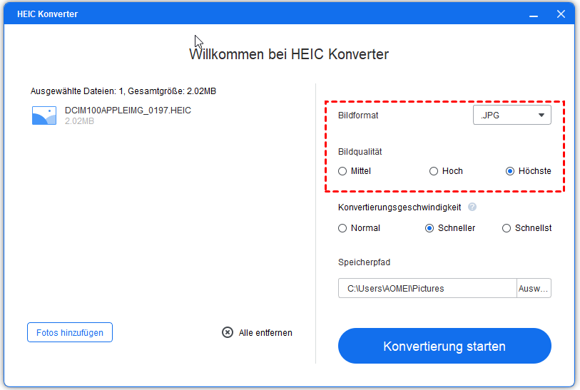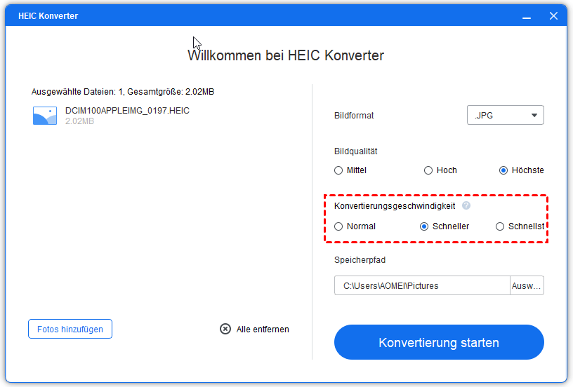 HEIC ist ein neues Bildformat von Apple. Nach der Aktualisierung von Apples iOS 11 wird es beim Aufnehmen von Fotos standardmäßig im HEIC-Format gespeichert. Im Vergleich zu JPG nimmt es weniger Platz ein und die Bildqualität ist verlustfreier. Dieses Format kann jedoch nicht direkt mit der integrierten Anzeigesoftware in Windows geöffnet werden und muss daher zunächst konvertiert werden.