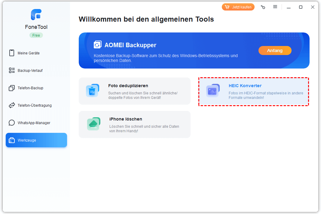 Schritt 1. Wählen Sie in der Leiste „Werkzeuge“ die Funktion „HEIC-Konverter“.