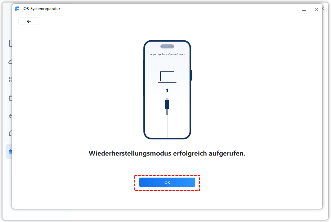 3. Nachdem Sie den Wiederherstellungsmodus erfolgreich aufgerufen haben, klicken Sie auf „Bestätigen“, um zurückzukehren. Ihr iOS-Gerät befindet sich jetzt im Wiederherstellungsmodus.