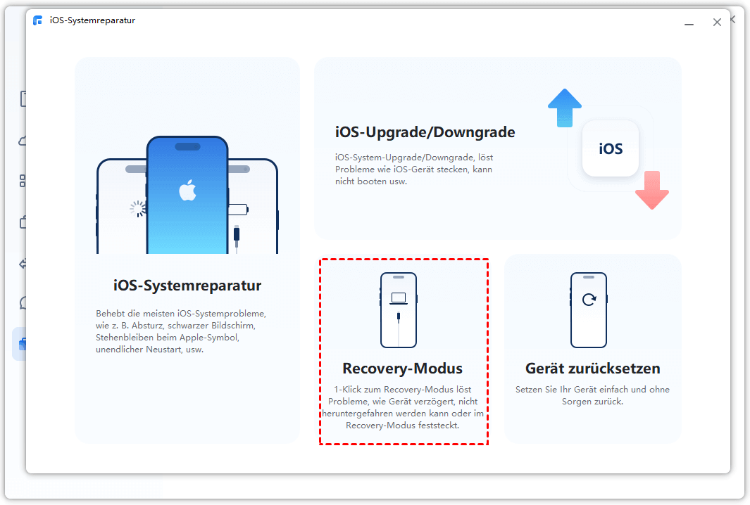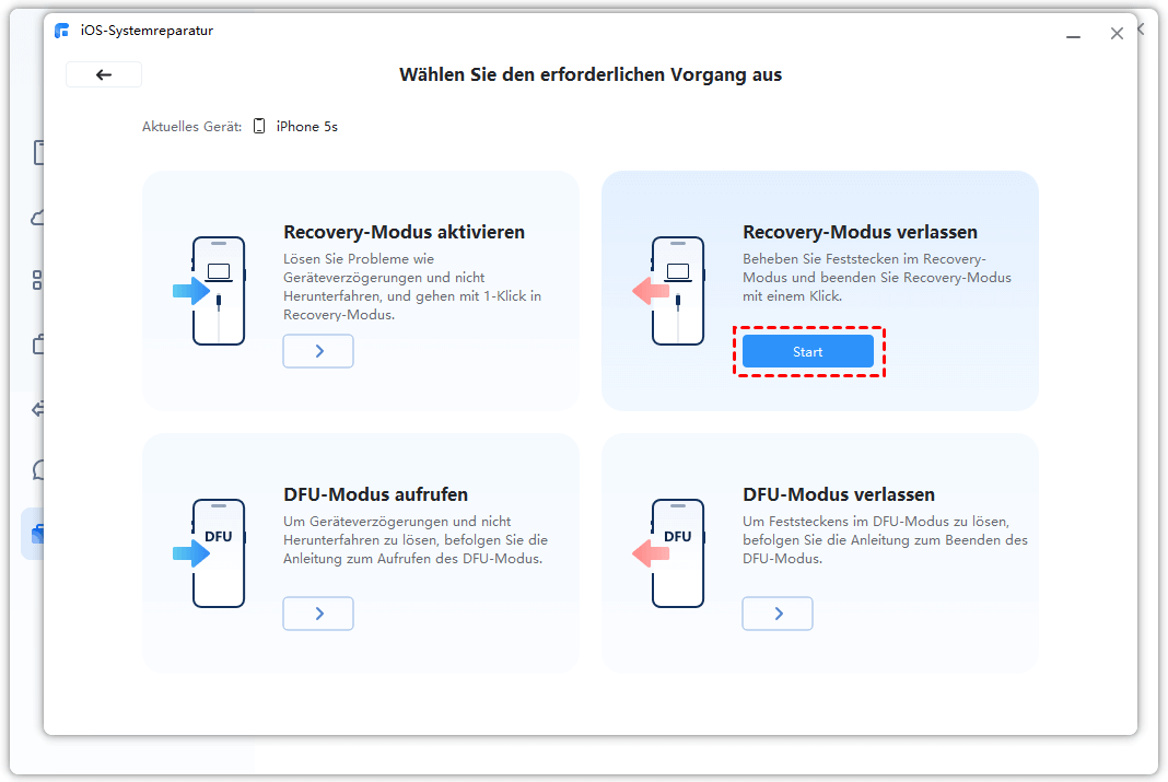 2. Um in den Wiederherstellungsmodus zu wechseln, wählen Sie eine der Optionen auf der linken Seite aus.