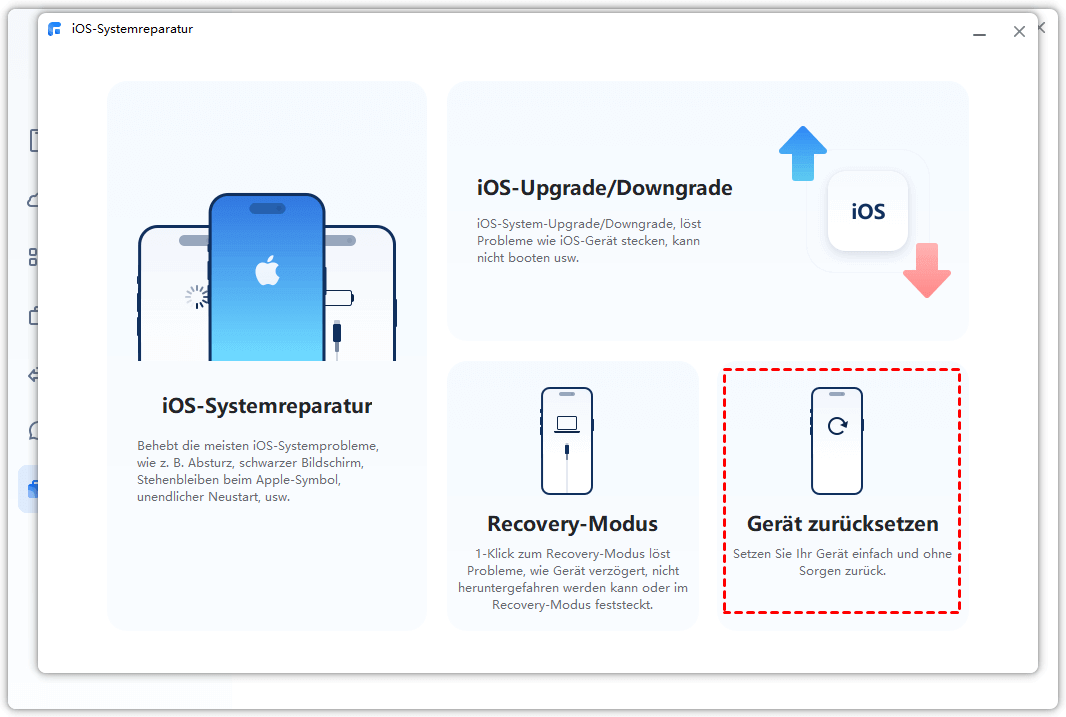 2. Klicken Sie auf „Werkzeuge“ auf der linken Seite und wählen Sie „iOS-Systemreparatur“, um auf das Tool zuzugreifen.