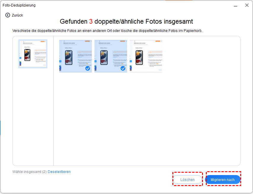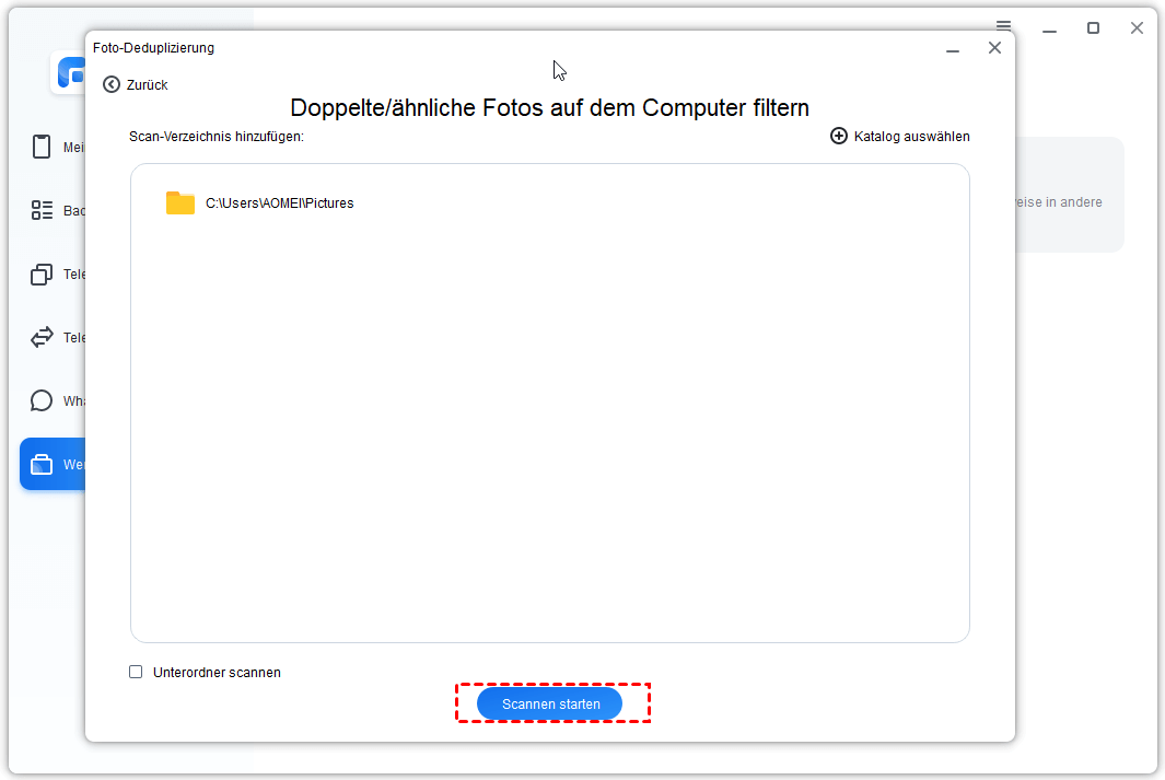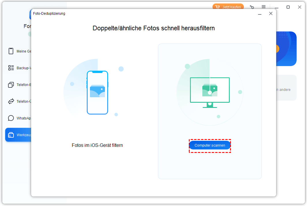 Mit dieser Funktion können Sie Fotos auf iOS-Geräten oder Computern scannen und vergleichen und dann je nach Bedarf doppelte Fotos löschen oder migrieren.