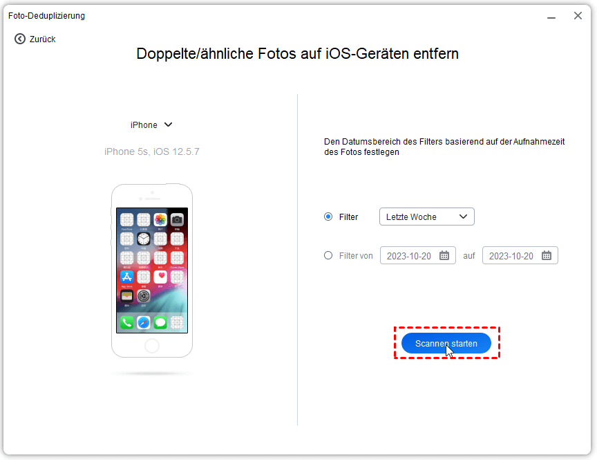 Schritt 3: Geben Sie den Aufnahmezeitraum an und klicken Sie dann auf die Schaltfläche „Scannen starten“, um die in diesem Zeitraum aufgenommenen Fotos zu scannen und zu vergleichen.