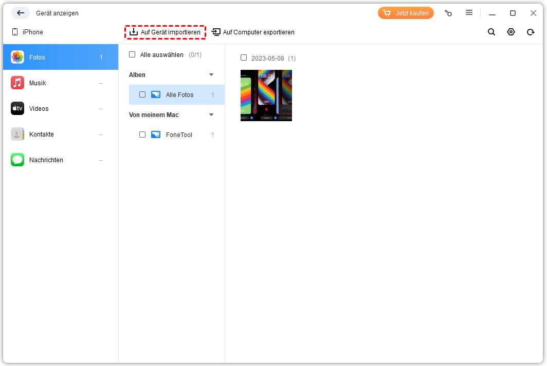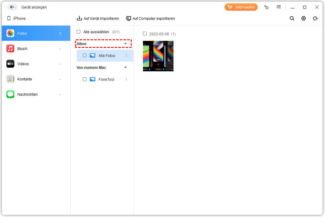 Wie übertrage ich Fotos mit FoneTool in ein bestimmtes Album auf iOS-Geräten?