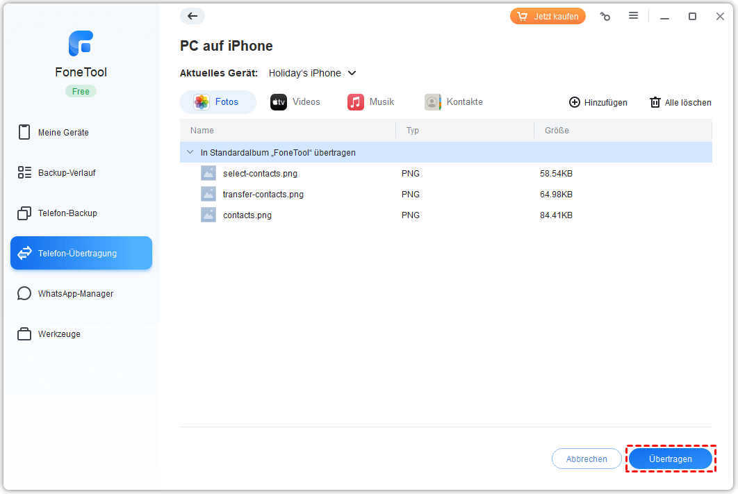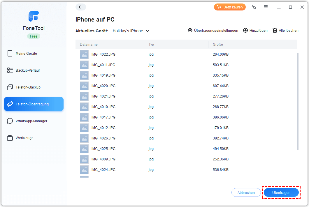 Ist Ihr iPhone voller Fotos, Musik, Software und Daten? Mit der einfachen iPhone-Übertragungs-App können Sie regelmäßig Dateien vom iPhone auf den PC übertragen, um Speicherplatz freizugeben, und eine Sicherungskopie aller Ihrer Daten auf dem Computer erstellen.