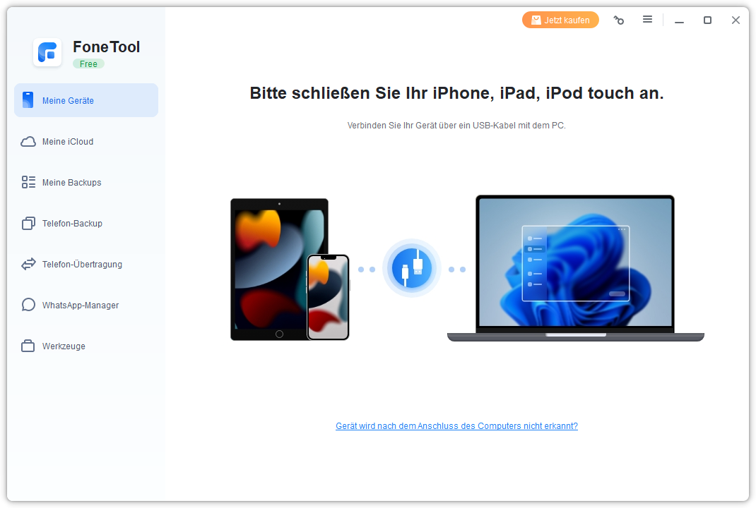 Starten Sie FoneTool und verbinden Sie Ihre beiden iPhones mit diesem Computer.