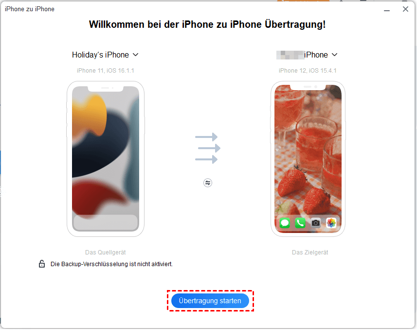 Klicken Sie auf Telefon-Übertragung und wählen iPhone zu iPhone > Übertragen.