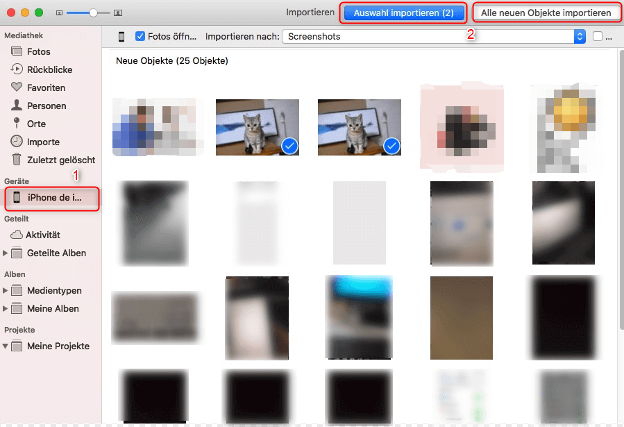 Tipp: Wenn Sie iTunes zum Synchronisieren von Fotos vom PC mit dem iPhone verwendet haben, konnten diese Fotos auf diese Weise nicht erkannt oder auf den Mac übertragen werden. Sie könnten zur dritten Methode dieser Passage übergehen.