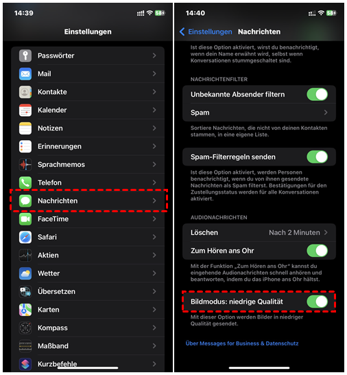 iMessage ist in der Lage, Fotos in hoher Qualität vom iPhone zu senden, aber Sie sollten zuerst zur App „Einstellungen“ gehen, um eine Option zu deaktivieren.