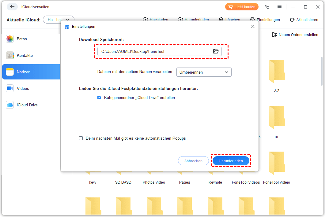 Um Daten von iCloud auf Ihren PC herunterzuladen, kann Ihnen auch der leistungsstarke iCloud-Manager - FoneTool - sehr helfen!