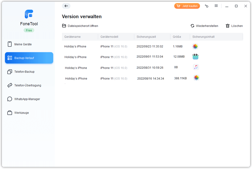 Laden wir das kostenlose FoneTool herunter und erfahren Sie, wie Sie einfacher ein iPhone-Backup unter Windows 10, 11, 8, 7 ohne iTunes durchführen können.