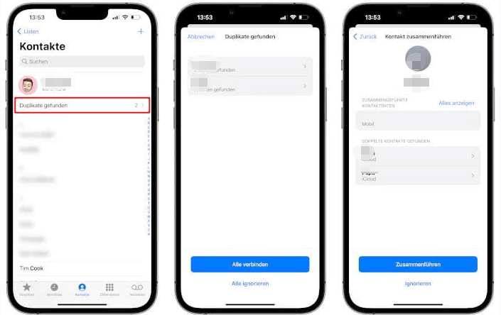 Weg 1. Doppelte Kontakte in iPhone-Kontaktliste löschen/zusammenführen – iOS 16 und höher