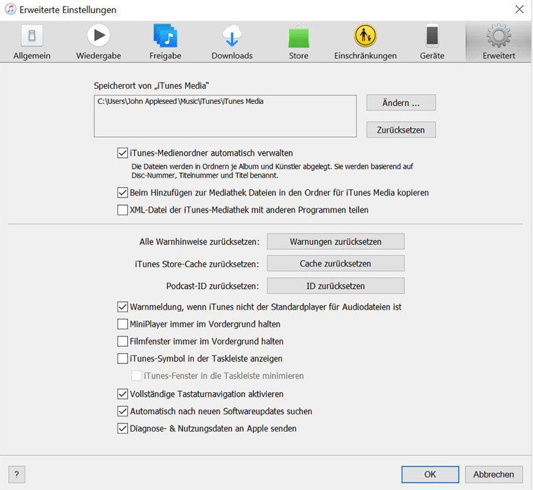 Tipp 2. iTunes-Cache zurück zurücksetzen