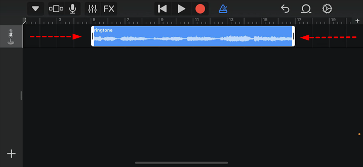 Tippen Sie auf diese Spur und ziehen Sie beide Enden, um den Ton zu kürzen. Er sollte weniger als 30 Sekunden lang sein.