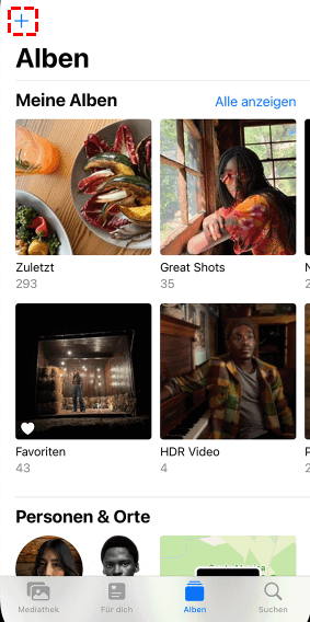 Schritt 2. Klicken Sie auf die Registerkarte Alben und tippen Sie anschließend auf das Plus-Symbol oben links auf dem Bildschirm.