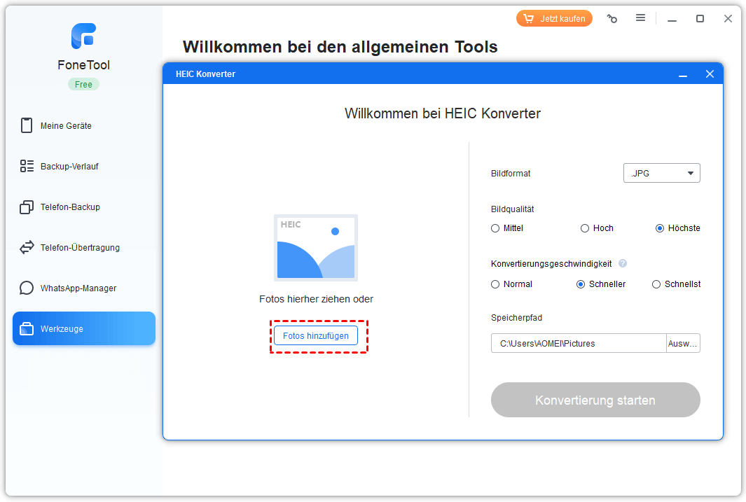 Klicken Sie auf die Download-Schaltfläche, um FoneTool herunterzuladen, und folgen Sie den nachstehenden Schritten, um HEIC-Fotos zu konvertieren.