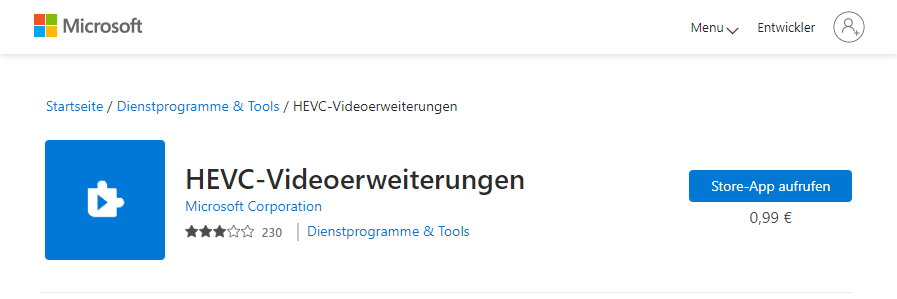 - Wenn Sie Videos überprüfen möchten, sollten Sie HEVC-Videoerweiterungen im Store kaufen.