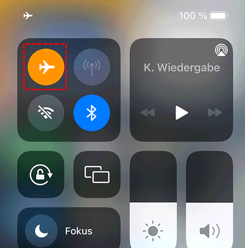 Schritt 1. Wischen Sie nach unten, um das „Kontrollzentrum“ aufzurufen, und klicken Sie dann auf das Flugzeugsymbol, um den Flugzeugmodus auszuschalten.