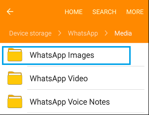 Schritt 2. Suchen und tippen Sie auf den WhatsApp-Ordner > Medienordner auswählen > WhatsApp-Bilder, um alle auf Ihrem WhatsApp gesendeten und empfangenen Fotos anzuzeigen.