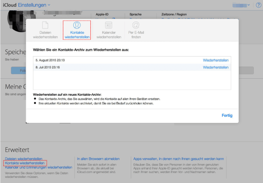 Methode 3. Gelöschte iPhone-Kontakte aus iCloud-Backup wiederherstellen