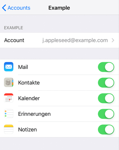 Schritt 1. Gehen Sie auf Ihrem iPhone zu: Einstellungen > E-Mail > Account.