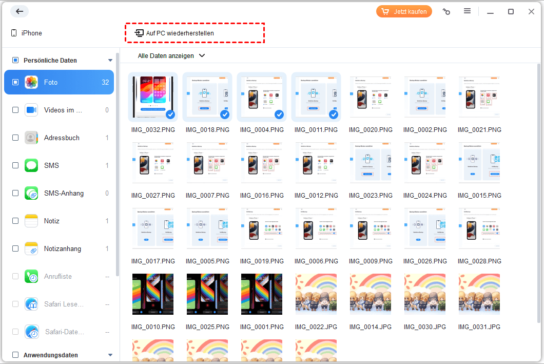 ✦ Sie können vor dem Wiederherstellungsprozess nicht alle Dateien in der Vorschau anzeigen und ausgewählte Daten auf Ihrem iPhone wiederherstellen.