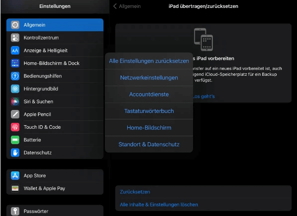 Das Zurücksetzen aller Einstellungen kann auch das Problem „Automatische Sperre am iPad geht nicht“ beheben: