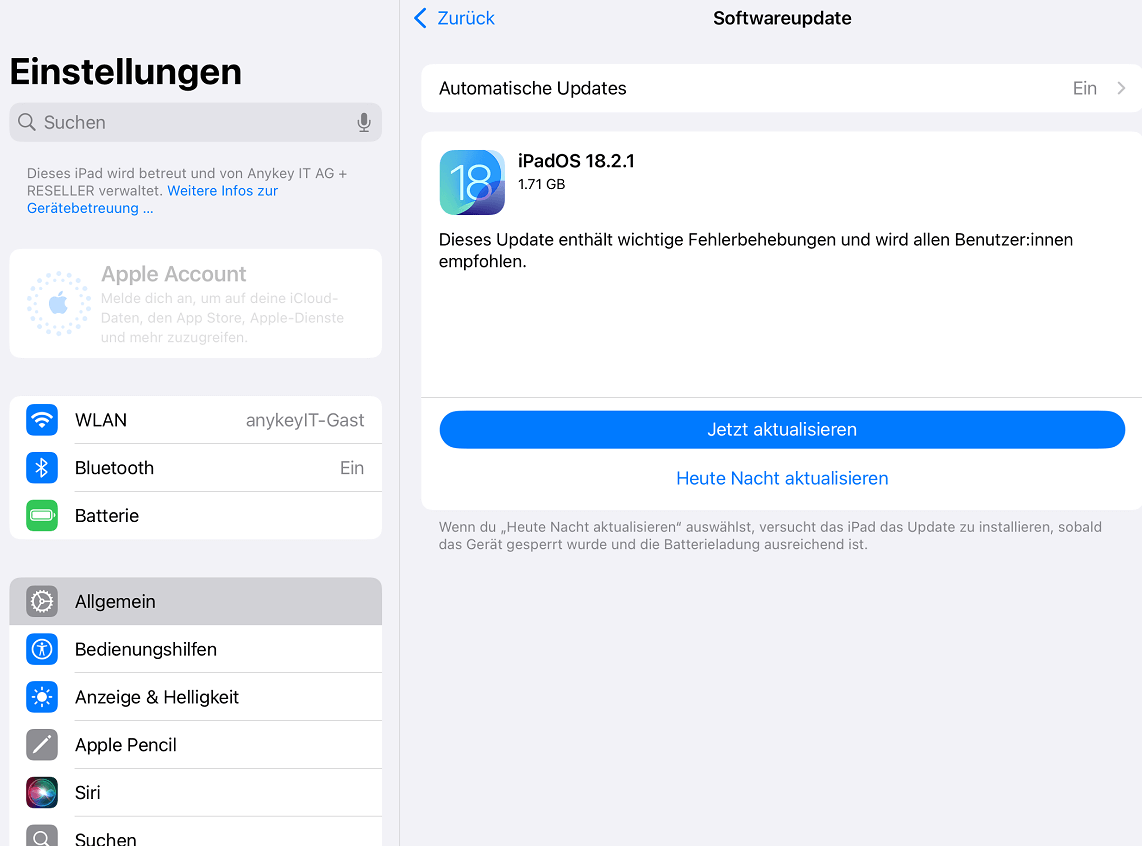 Probleme mit der automatischen Sperrfunktion können manchmal auf einen Fehler oder eine Störung zurückzuführen sein, die durch ein Software-Update behoben wurde. So stellen Sie sicher, dass Ihr iPad die neueste iOS-Version verwendet: