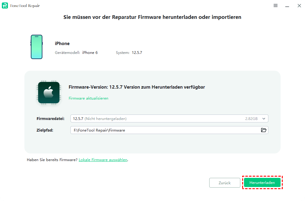 Schritt 3: Laden Sie eine neue Firmwaredatei für Ihr iPad herunter > Ändern Sie bei Bedarf den Speicherort über die Option „Zielpfad“ > Klicken Sie abschließend auf „Herunterladen“.
