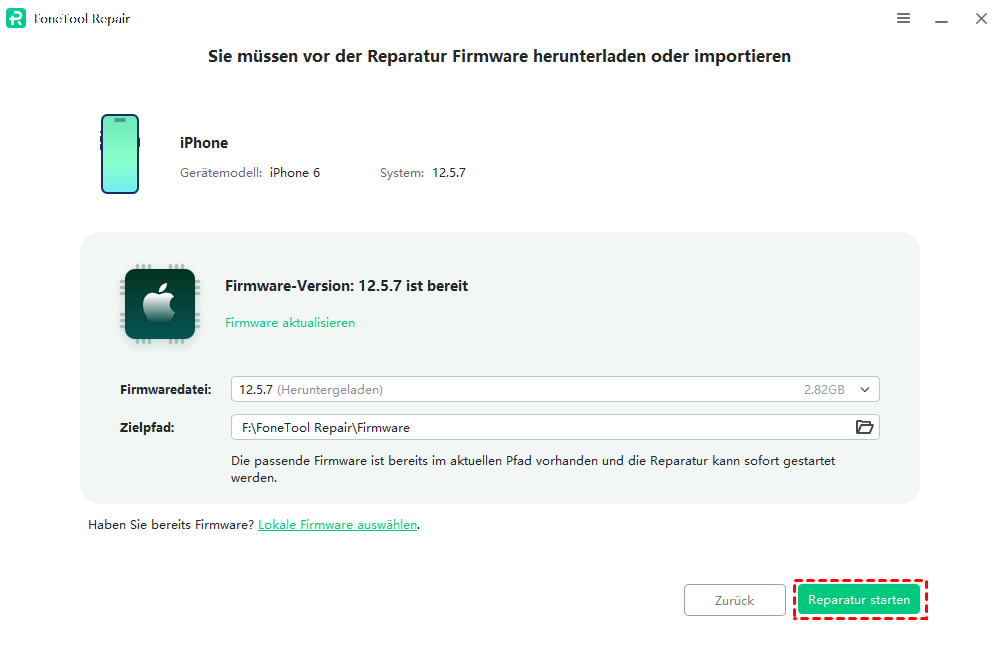 Schritt 4: Nach dem erfolgreichen Download klicken Sie auf „Reparatur starten“, um den Vorgang einzuleiten. Ihr Gerät wird automatisch repariert und danach neu gestartet.