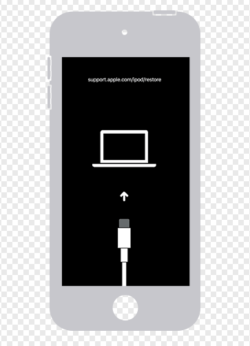• iPod Touch (7. Generation): Schalten Sie den iPod aus > Halten Sie die Leiser-Taste gedrückt und verbinden Sie gleichzeitig Ihren iPod über USB mit dem Computer > Lassen Sie die Taste los, bis der unten dargestellte Bildschirm „Wiederherstellungsmodus“ angezeigt wird.