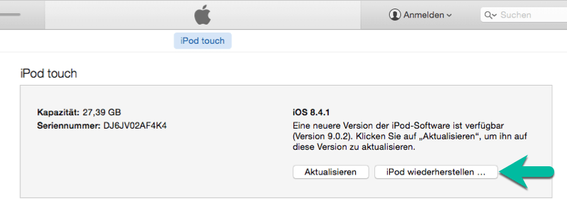 Teil 1. Deaktivierten iPod mit iTunes zurücksetzen