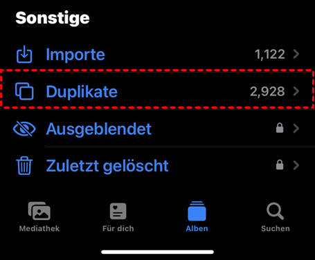 Schritt 1. Gehen Sie zur Fotos-App > Alben > Tippen Sie auf die Alben „Duplikate“.