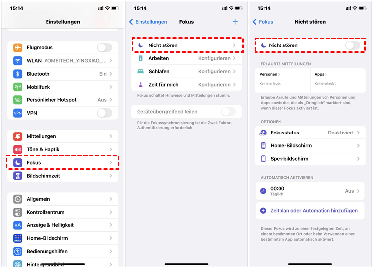 Möglichkeit 3. Deaktivieren des Nicht-Stören-Modus
