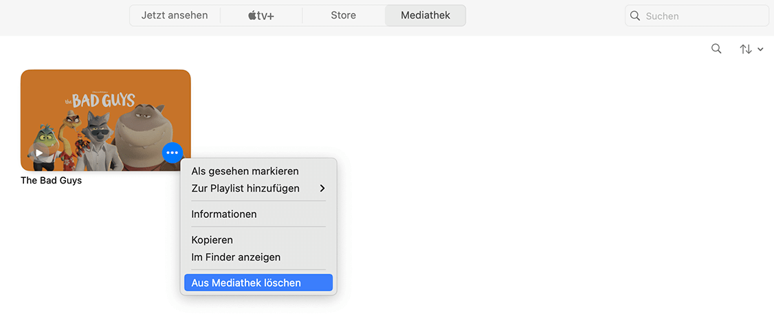 4. Klicken Sie in der Menüleiste oben auf dem Bildschirm auf „Bearbeiten“ und wählen Sie dann „Aus Mediathek löschen“.