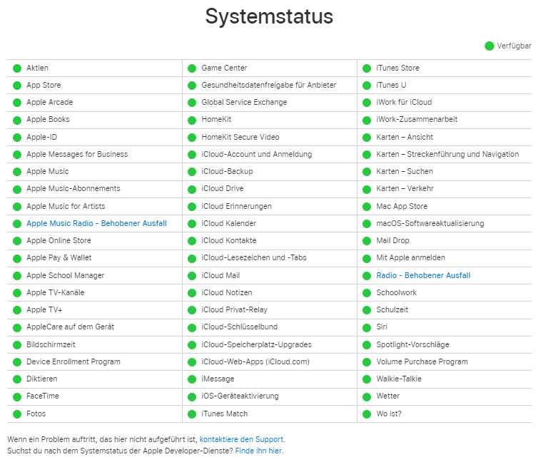 Lösung 1. Überprüfen Sie den Apple Systemstatus